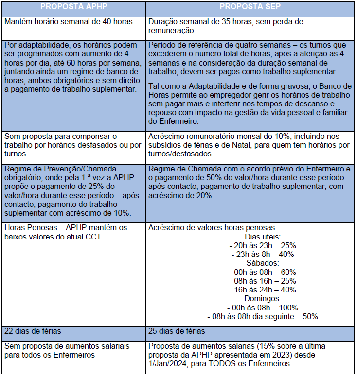 Apresentámos proposta à APHP, vastamente debatida e aprovada, nas reuniões realizadas com os enfermeiros, proposta esta que valoriza todos os enfermeiros e garante uma Carreira de Enfermagem digna e com direitos.