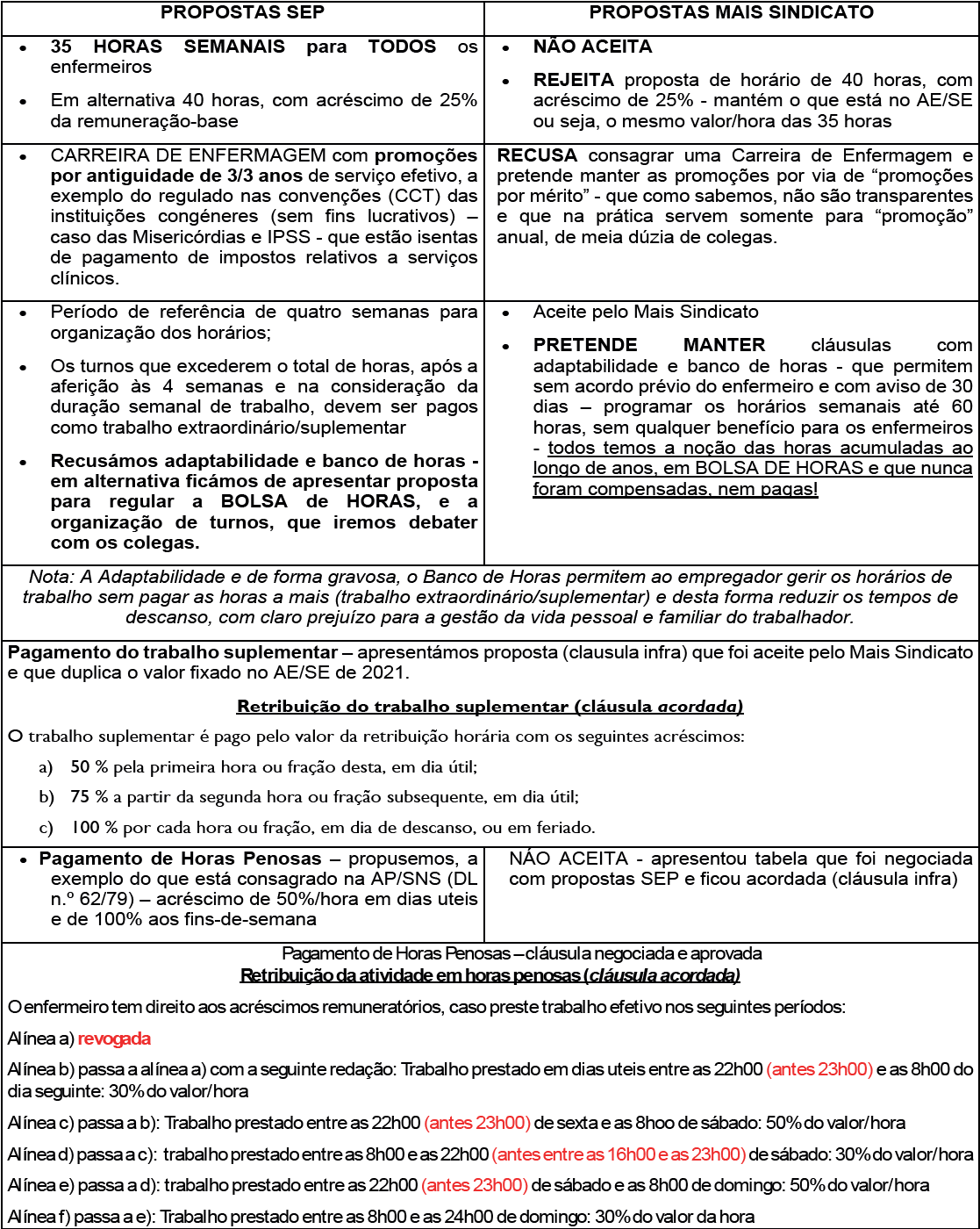 As reuniões negociais têm estado a decorrer normalmente e no quadro que se segue destacamos algumas das propostas já debatidas e outras ainda para reavaliação.